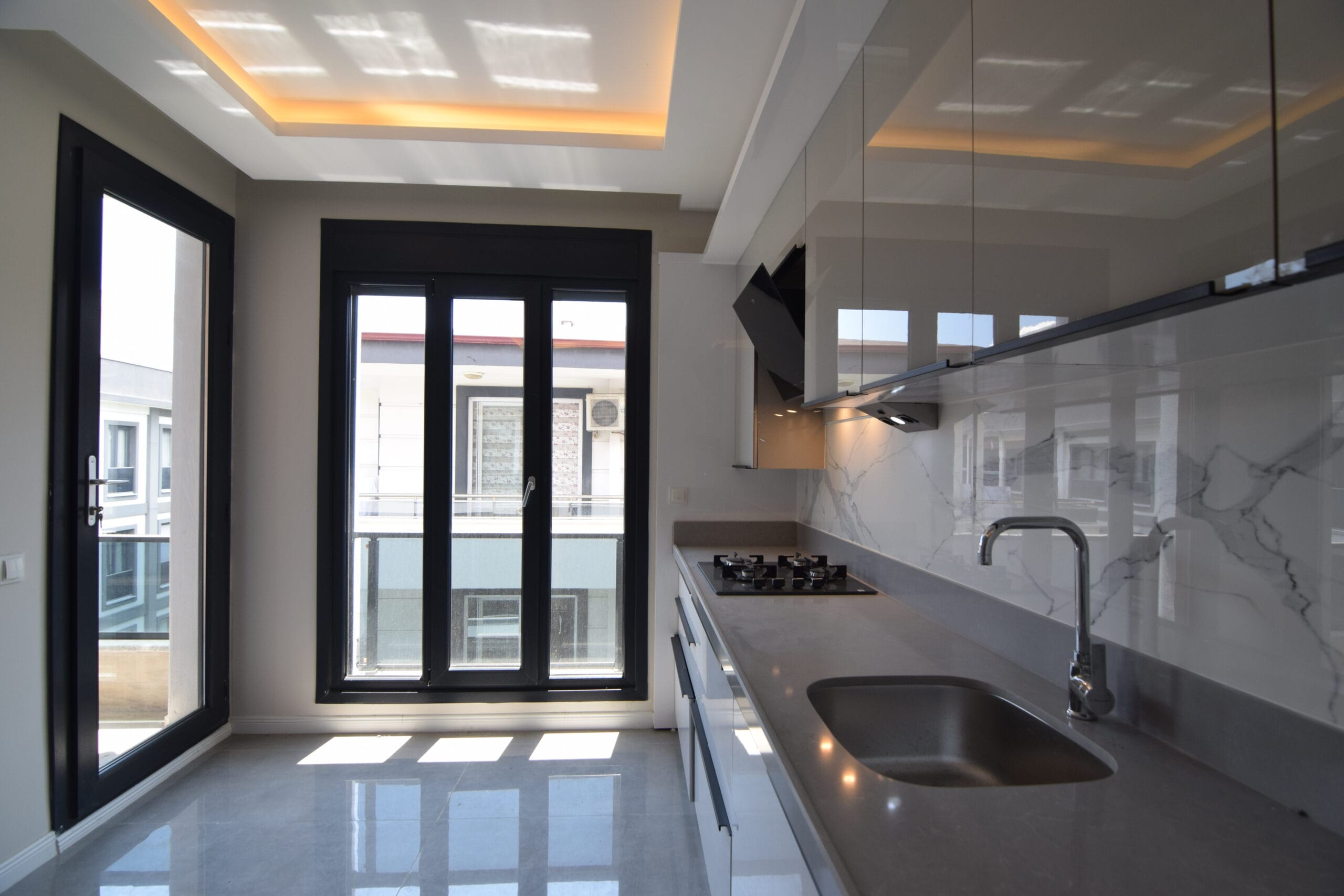 Modern iç mekan ve mimari tasarım: Daire içlerinde modern mutfak sistemleri, ankastre uyumlu çözümler, estetik tavan aydınlatmaları, kaliteli zemin kaplamaları ve fonksiyonel yaşam alanları oluşturularak konfor ve estetik bir araya getirilmiştir.